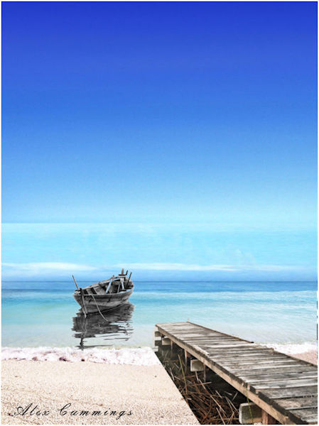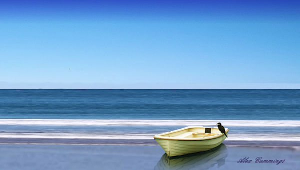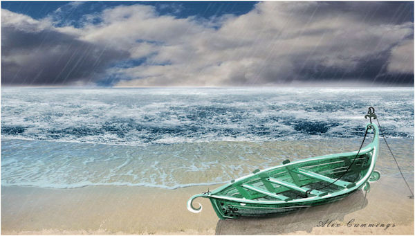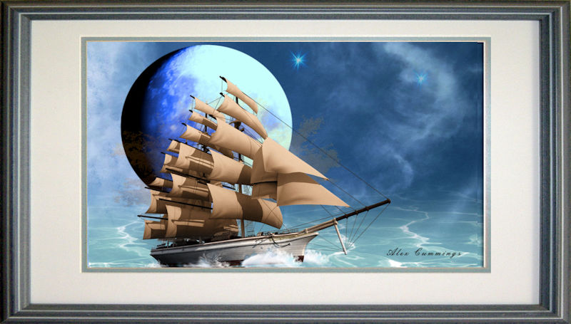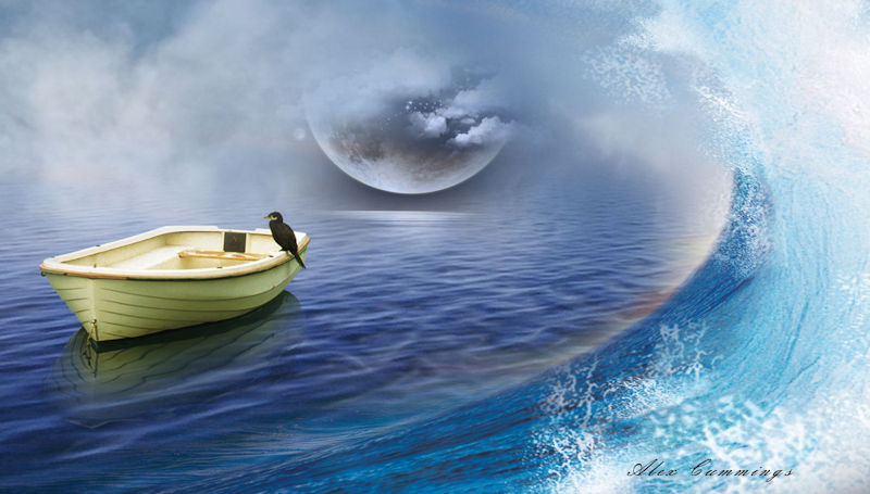 Below I think you can see that this is an obvious composite but in my style it is not too busy. It has a portion of the full moon, a row boat with bird and an oversized wave.